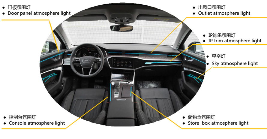 個性化:汽車內飾氛圍燈更加智能和燈光的互動性;